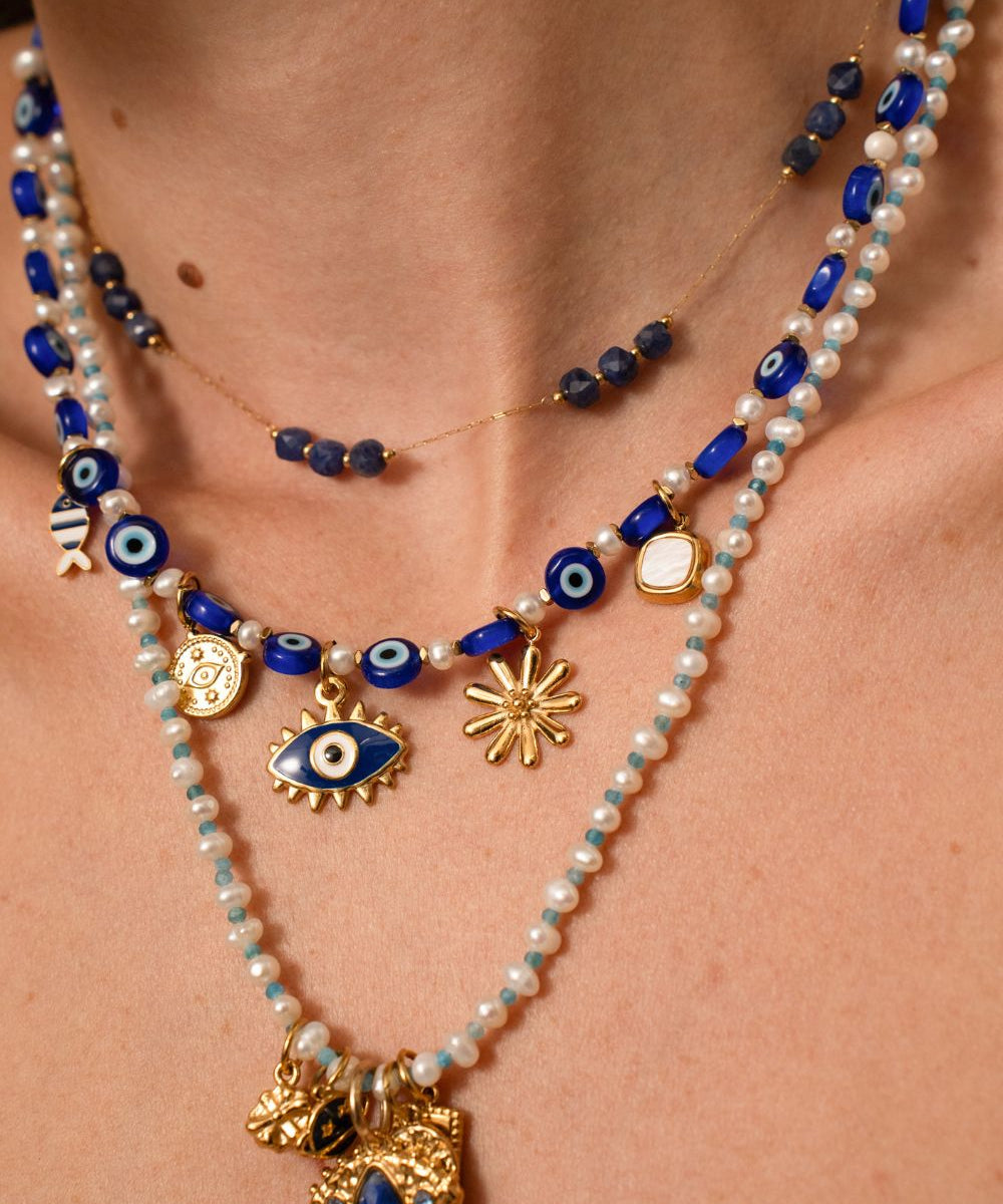 Pendentifs médaille coeur oeil Stardust 16x16mm - Doré