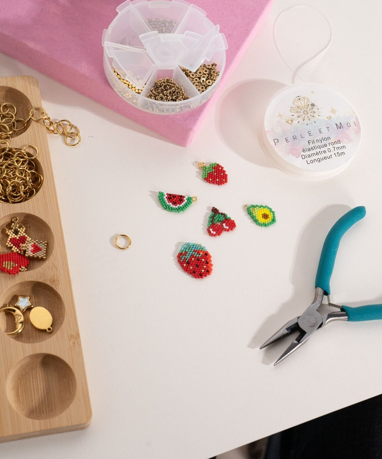 Pendentif tissage cerise 16x19mm