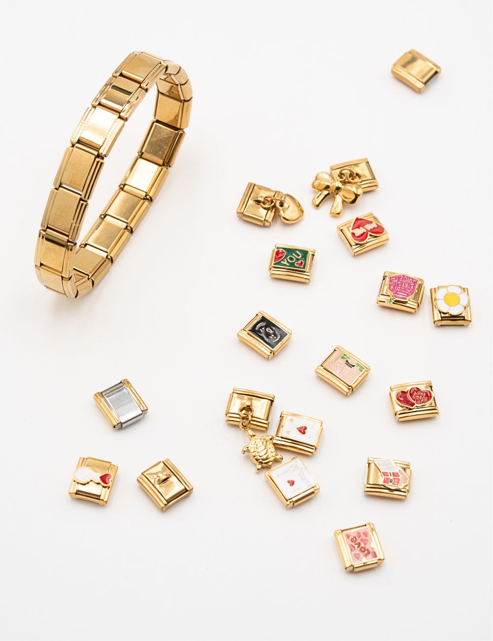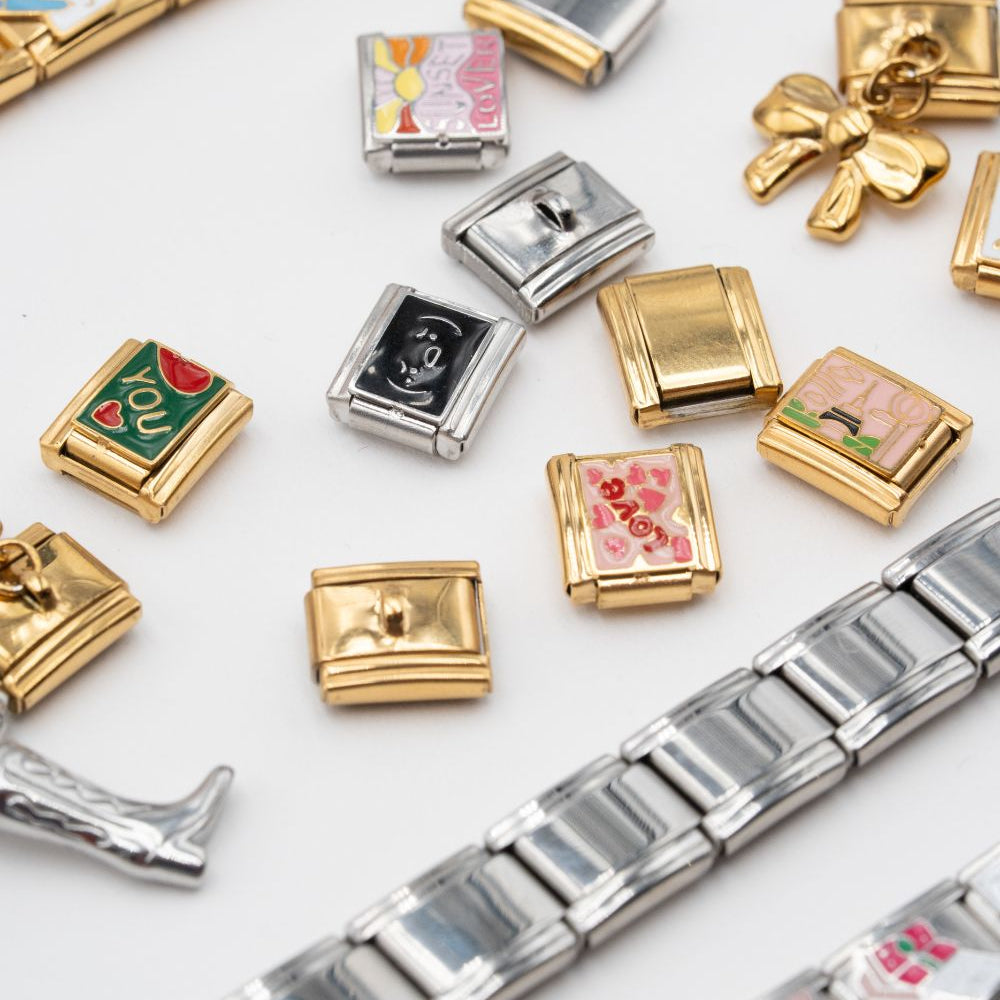 Ajoutez des maillons décoratifs à l’unité pour enrichir votre bracelet. Dorés ou rhodiés (argentés), ils se fixent facilement et apportent couleur, brillance et originalité. Chaque maillon est un détail qui transforme votre bijou en une pièce unique.