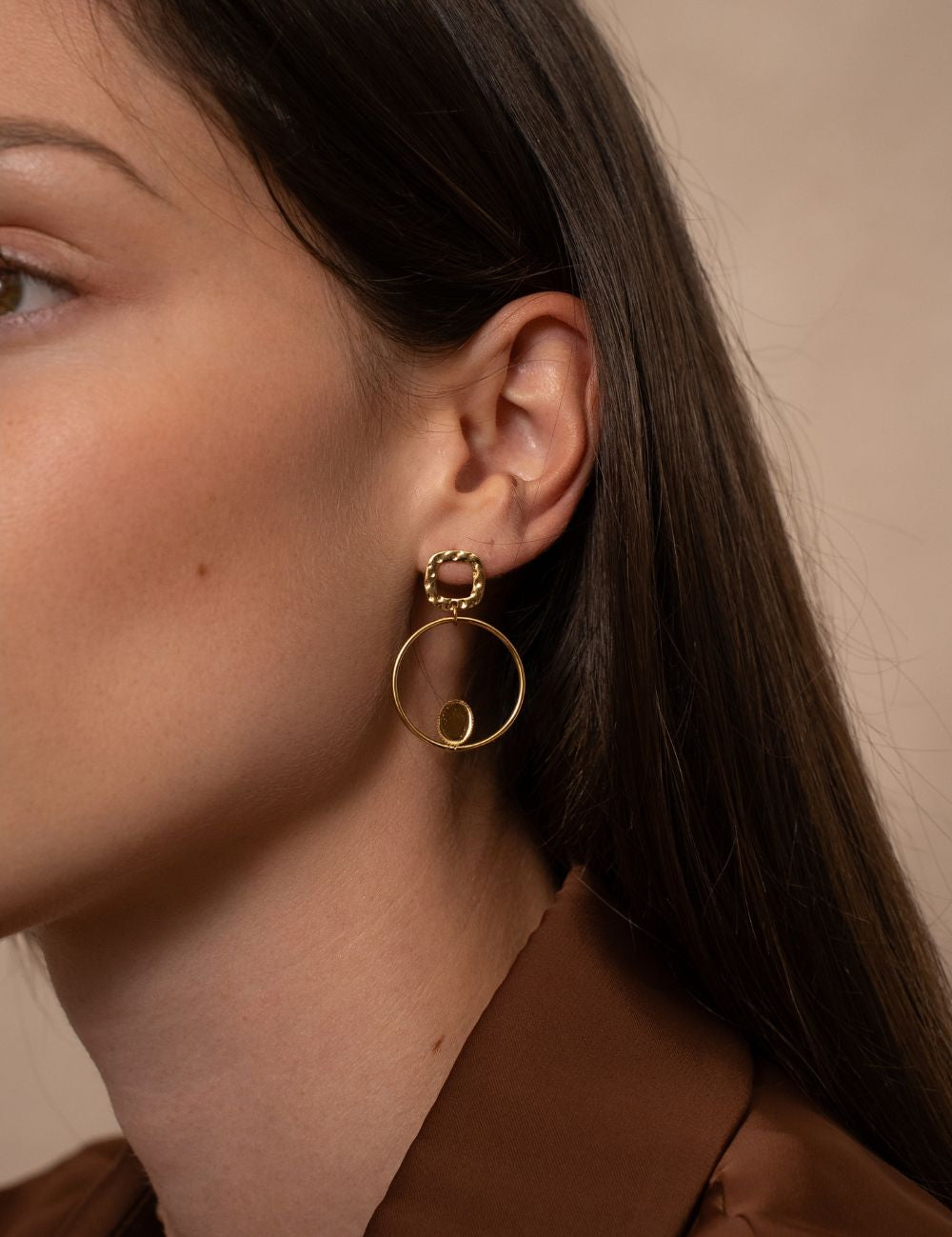 Le laiton est un alliage de cuivre et de zinc, souvent utilisé comme base pour les bijoux. Sa couleur naturelle est cuivrée ou dorée patinée. Grâce à une galvanisation (revêtement électrolytique), il peut être transformé en teintes dorées, argentées, bronze, or rose, etc.