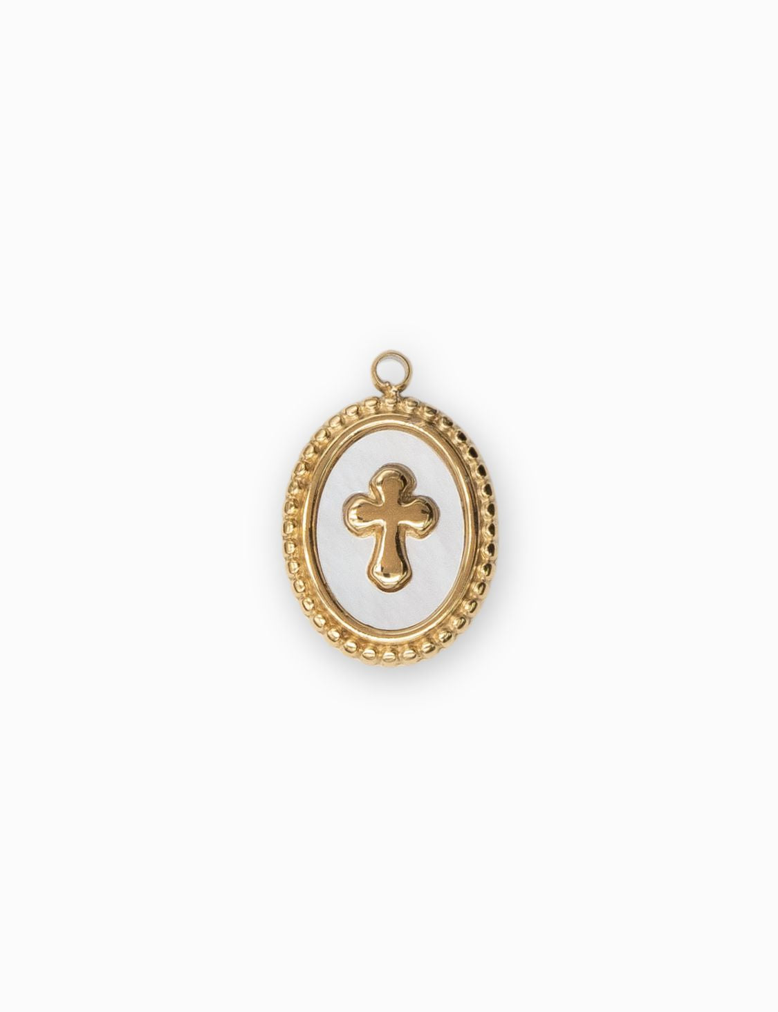 Pendentif croix en forme ovale.