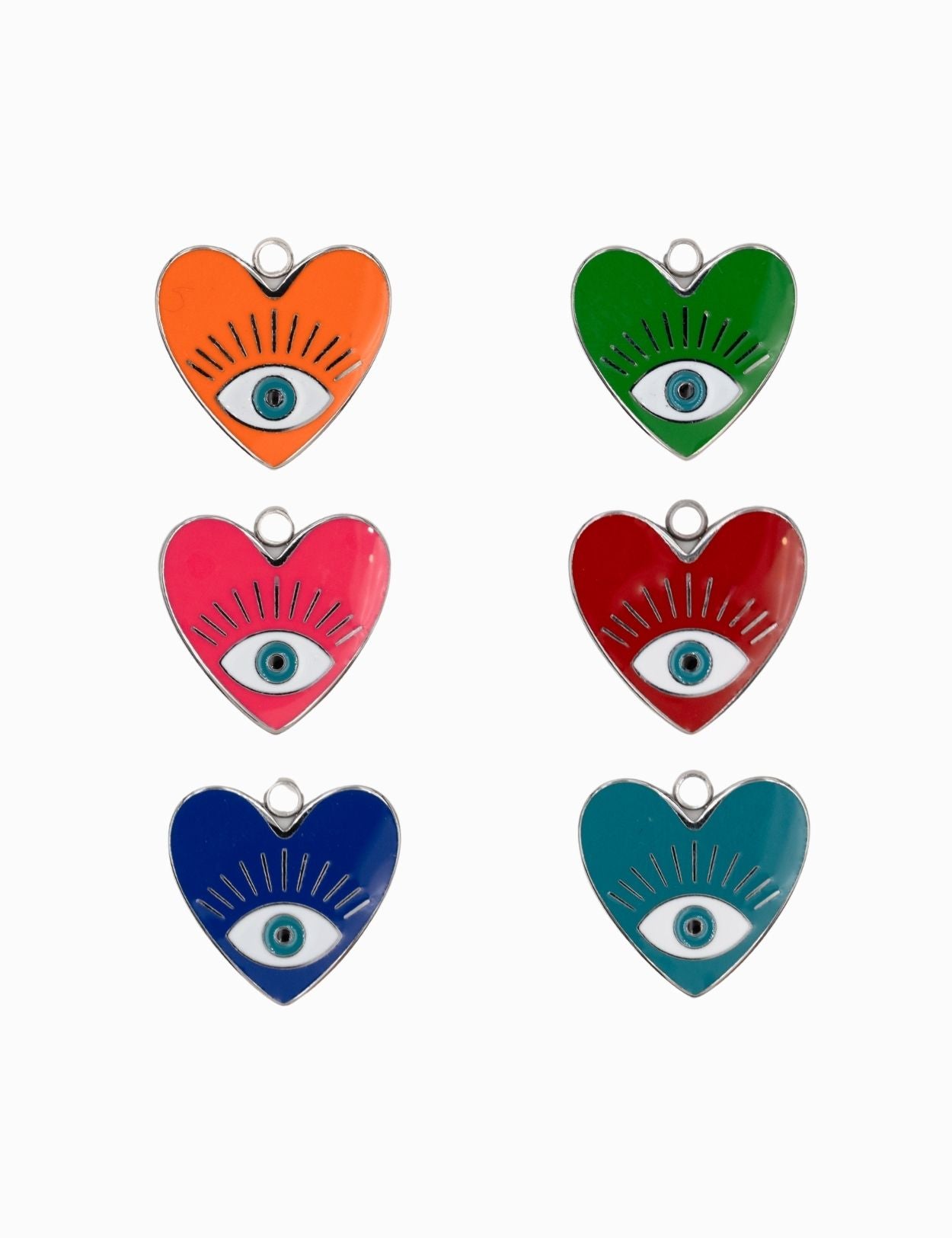 Pendentifs coeur oeil résine époxy 22x10mm- Lot mélangé Rhodié