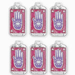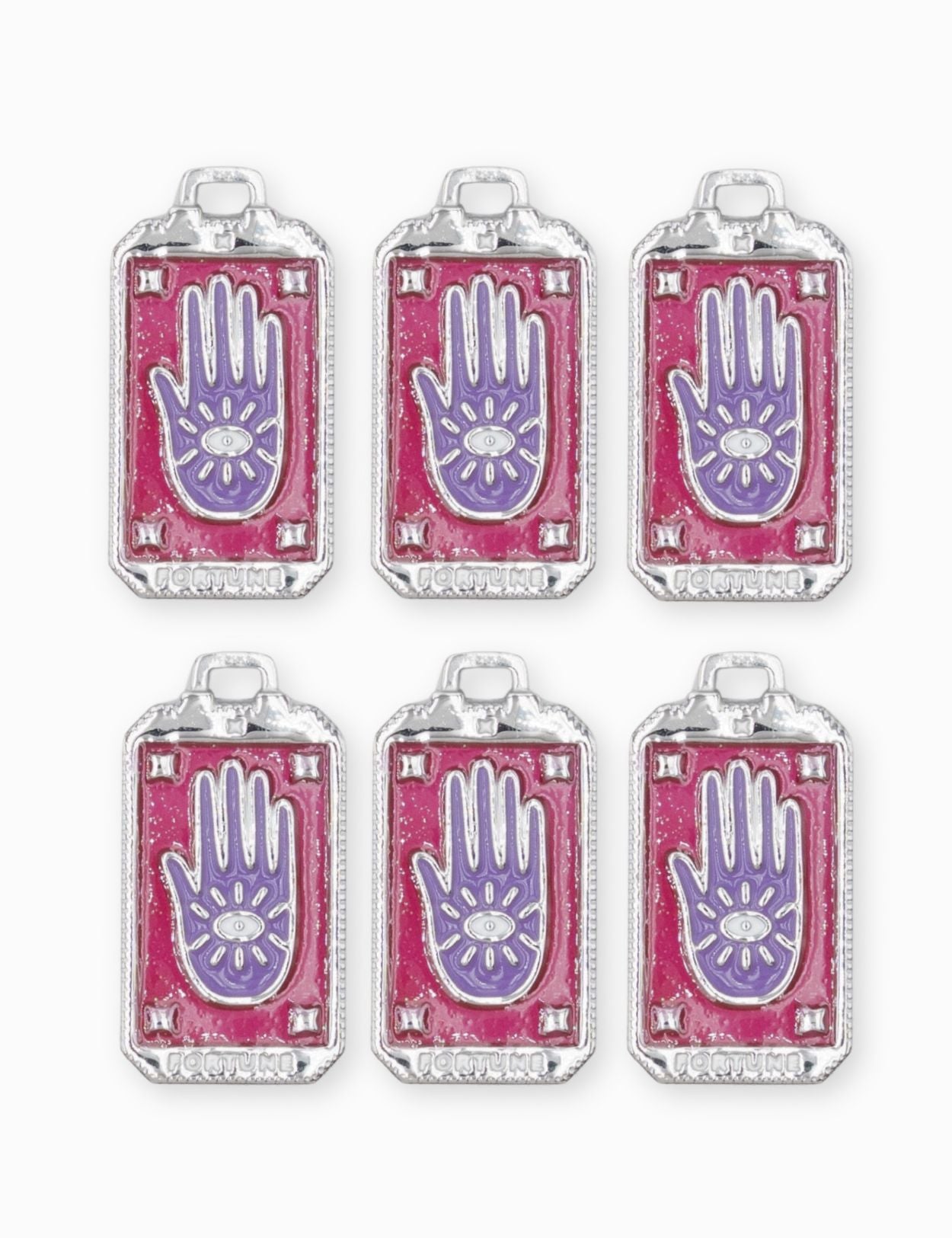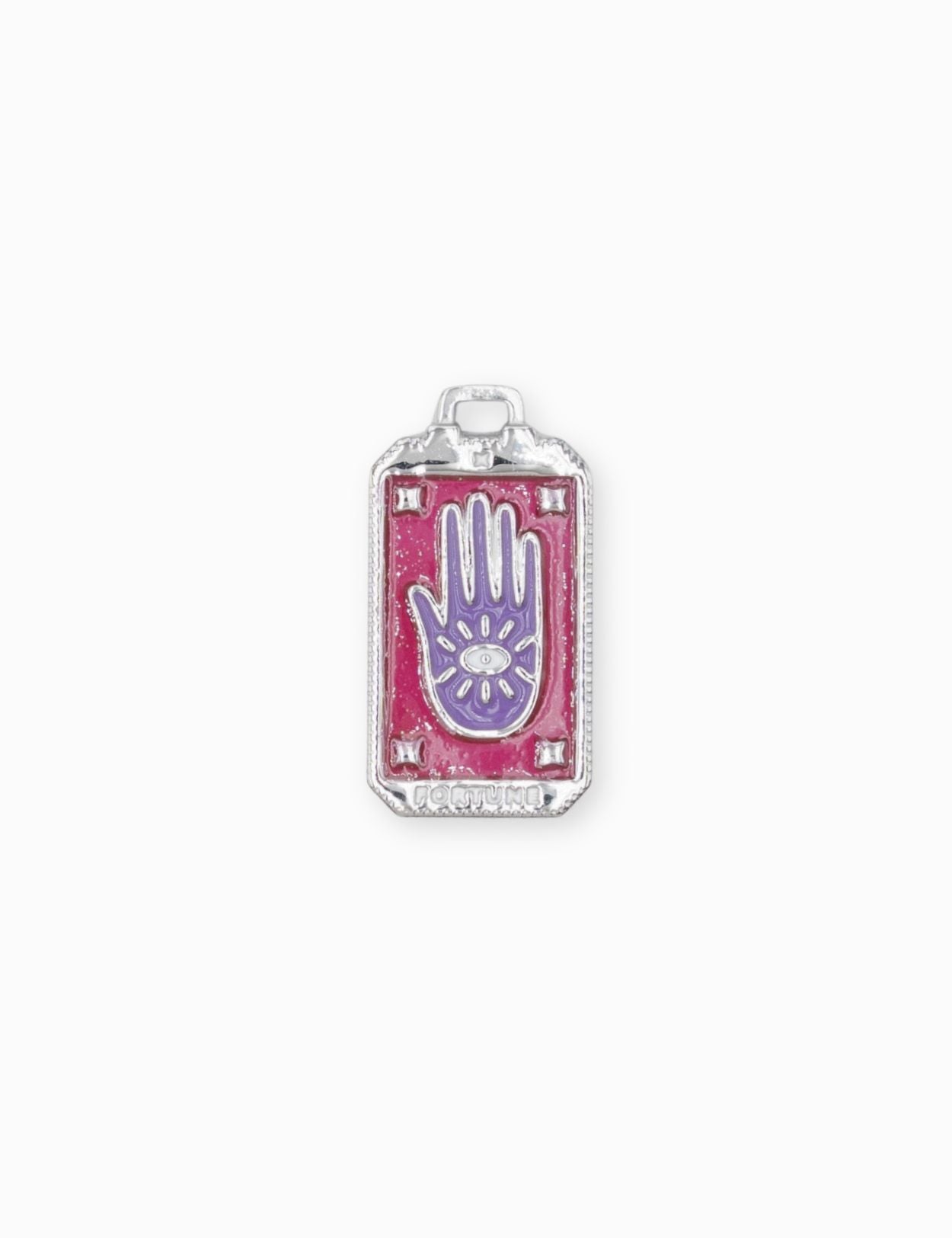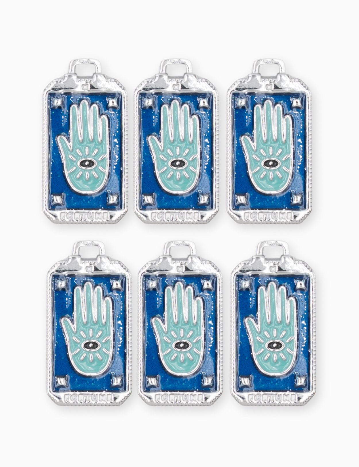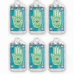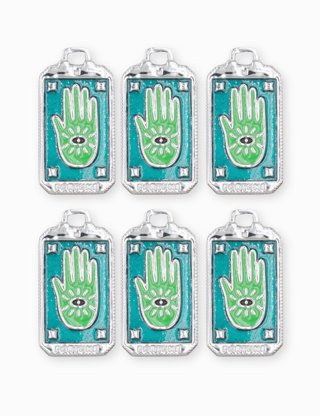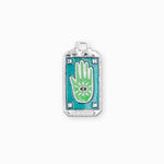 Pendentif médaille fortune en forme de rectangle avec la main de Fatma au centre. Vendus par pièce ou en lot de 6 pièces.