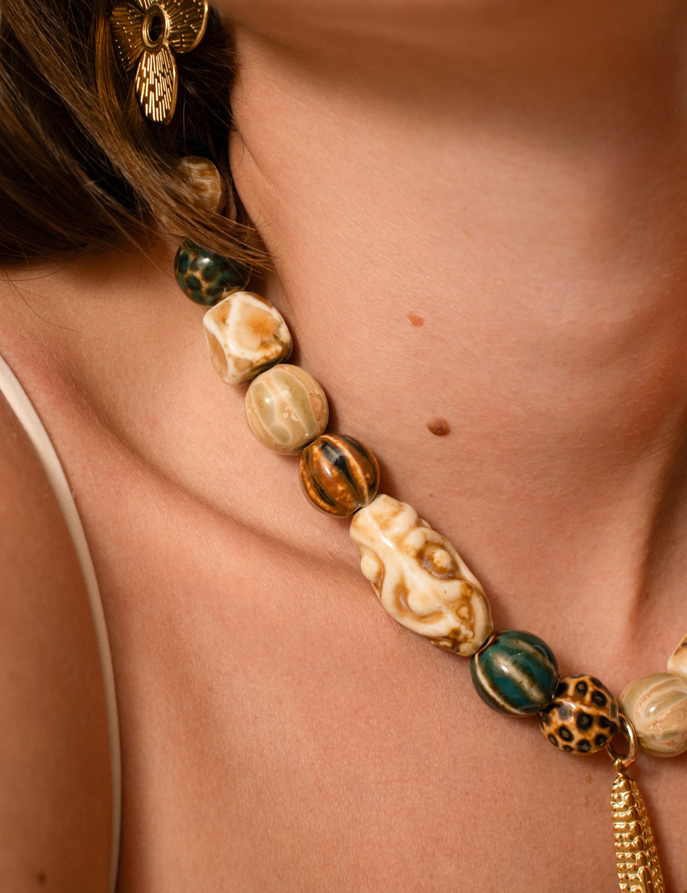 Perles en forme de noix.
